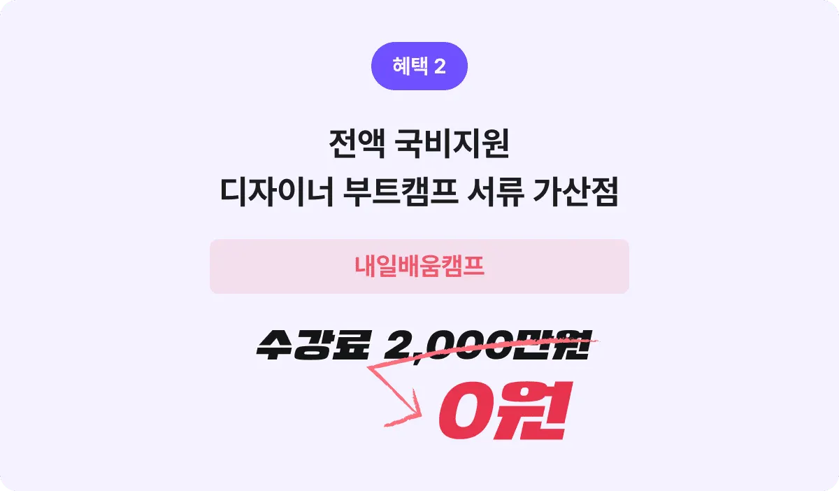 무료특강을 듣고, UX/UI 디자이너 부트캠프 합류 신청 시 아래 혜택을 모두 받을 수 있어요.